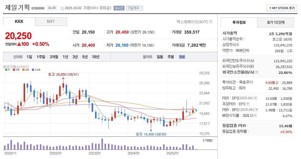 최민하 삼성증권 연구원은 “제일기획은 현행 연말 기준일을 적용한 연 1회 기말 배당 정책을 운영하는데 12월이 가까워질수록 배당 매력이 한층 부각될 것이다”며 “올해 연간 순이익은 전년 수준을 유지할 것으로 봐 목표주가는 2만5000원을 제시한다”고 했다. 현 주가 대비 23.46% 상승 여력이 있는 셈이다.