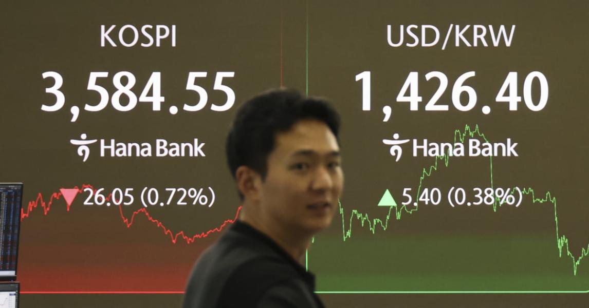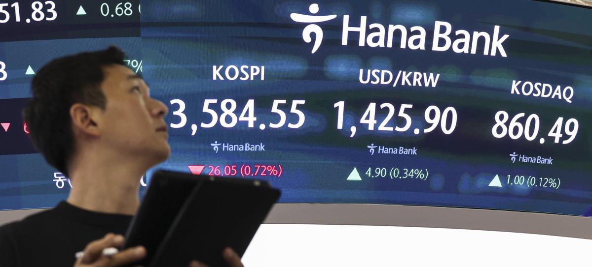 13일 서울 중구 하나은행 딜링룸 현황판에 코스피 지수 등이 표시되고 있다. 이날 코스피 지수는 전 거래일 대비 26.05포인트(0.72%) 내린 3584.55에, 코스닥은 1.00포인트(0.12%) 오른 860.49에 마감했다.