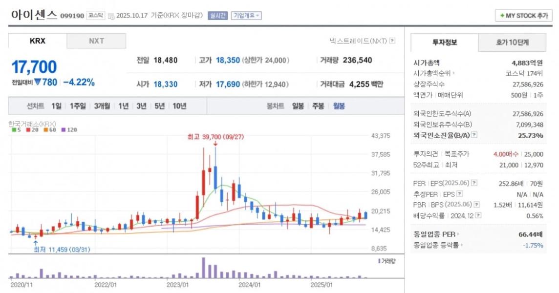 반년 전에 이 주식을 샀다면 수익률 40%에 육박한다.